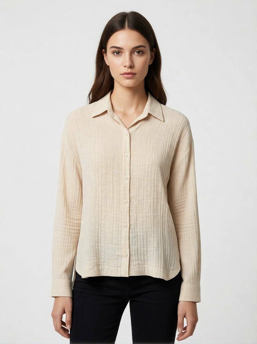 Елегантна сорочка у ніжному молочному відтінку. Муслін у білому/молочному кольорі виглядає максимально свіжо та дорого. Це незамінна річ для літнього сезону та відпочинку.