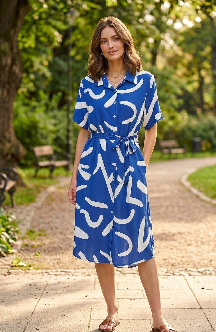 Сучасне джинсове платье-рубашка з поясом підкреслює талію та створює жіночний силует. Класичний комір і ґудзики спереду роблять модель універсальною для щоденного носіння. Легка тканина штапель забезпечує комфорт та свободу рухів.