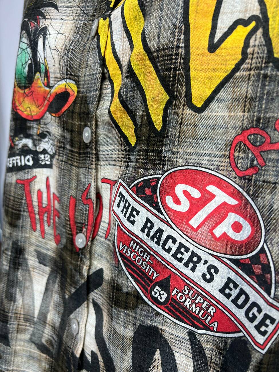 Трендова жіноча сорочка у стильному та практичному кольорі хакі. Модель виконана з м'якої фланелі з ефектом виварювання, що додає образу нотки вінтажного стилю Oversize Grunge. Поєднання класичної клітинки та зухвалих принтів робить цю річ незамінною у сучасному гардеробі.