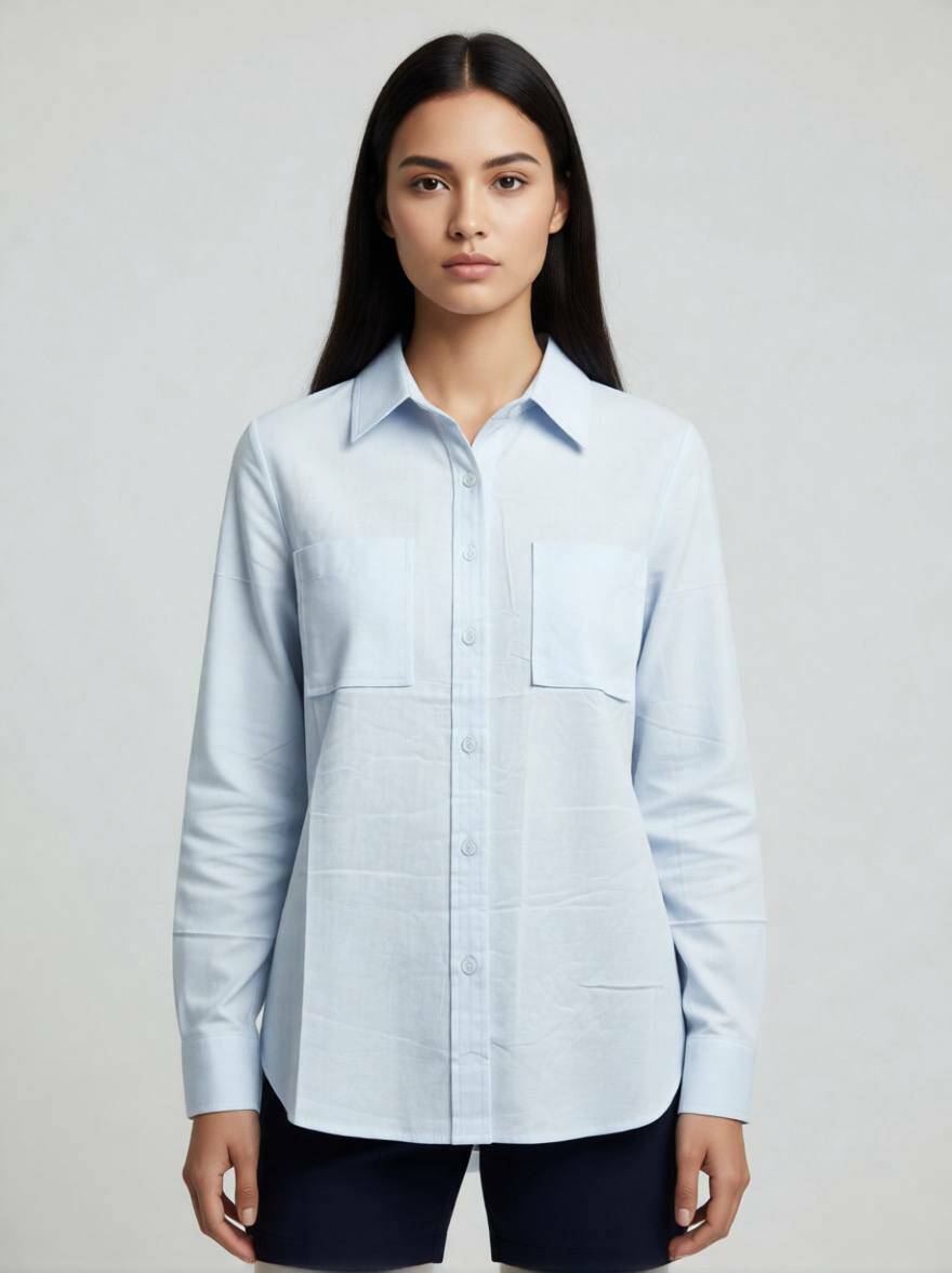 Деталі: Дві функціональні накладні кишені, класичний комір та закруглений низ (зручно носити як заправленою, так і навипуск).