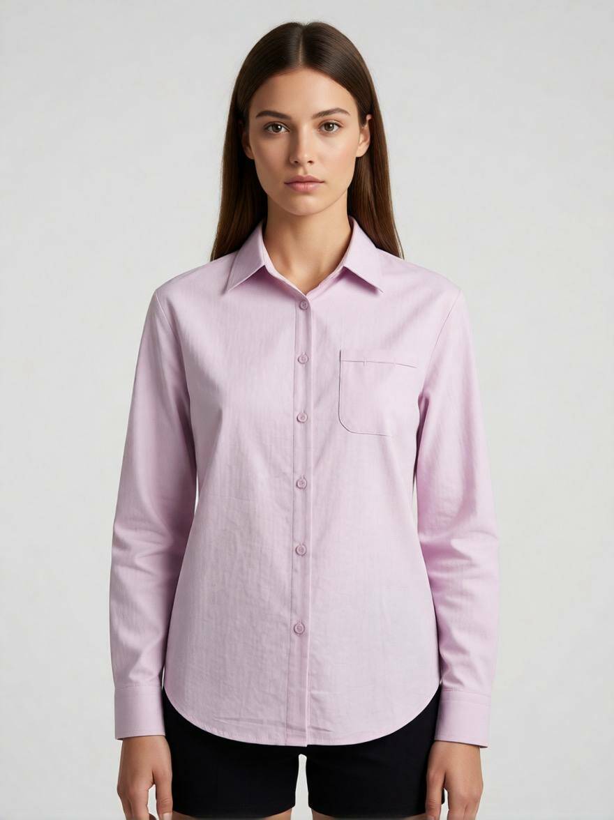 Витончена жіноча сорочка з однією нагрудною кишенею у ніжному пудровому кольорі. Ця модель поєднує в собі класичну стриманість та м'яку жіночність, стаючи ідеальним вибором для офісу, ділових зустрічей або повсякденних прогулянок.