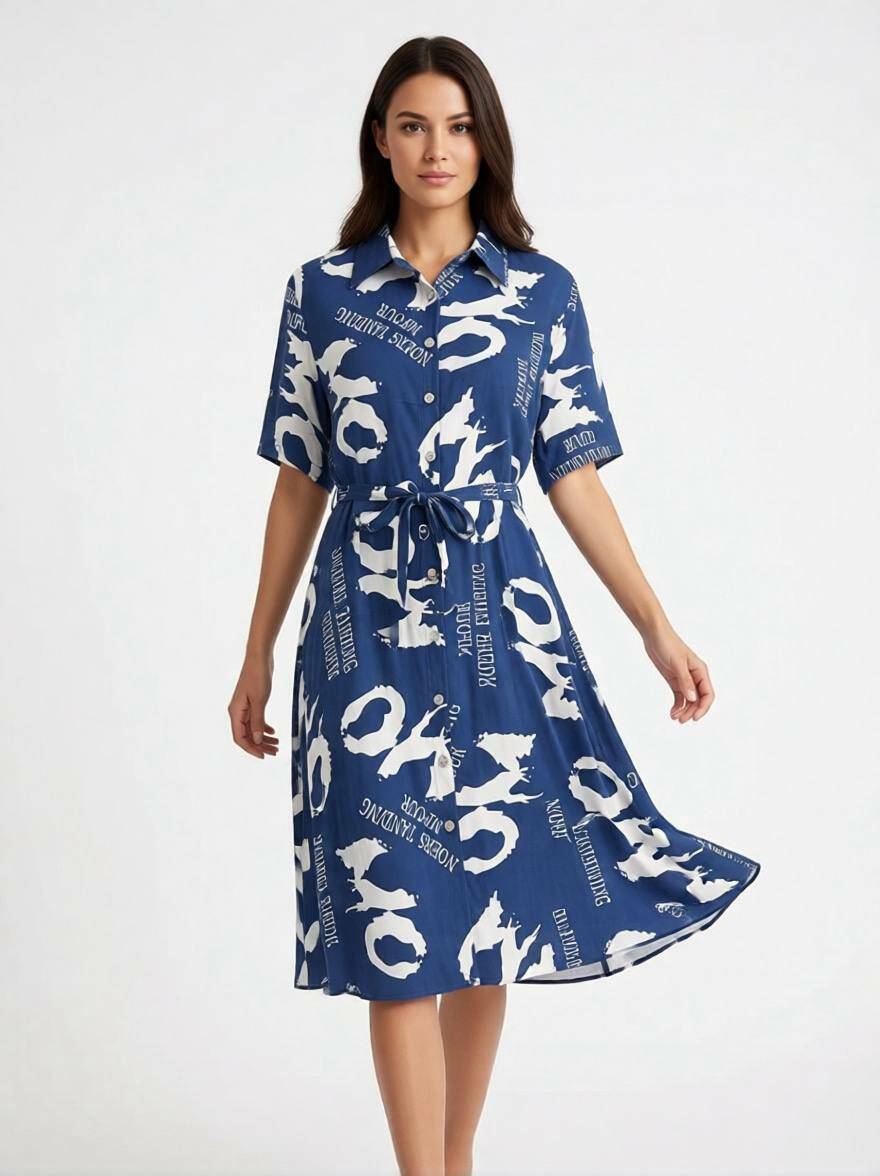 Фасон: Пряма сукня-сорочка, що плавно спадає по фігурі (трапеція або легкий оверсайз).