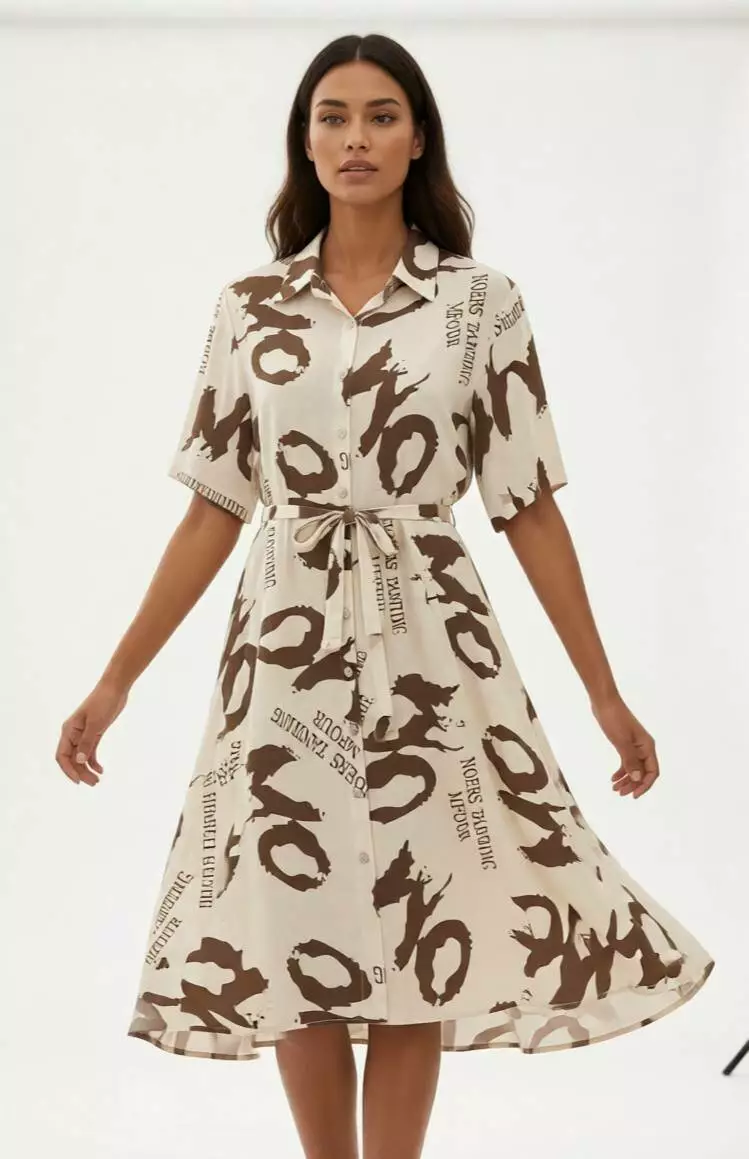 Фасон: Класична сукня-сорочка з легким А-силуетом, що гармонізує пропорції фігури.